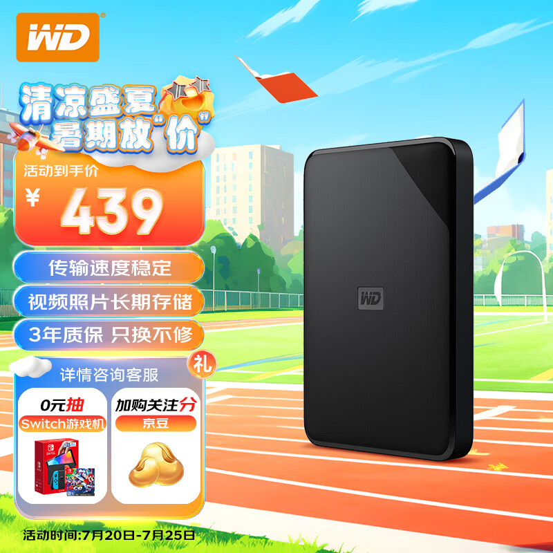 西部数据(WD)1TB 移动硬盘 USB3.0 Elements SE 新元素系列2.5英寸 机械硬盘 手机笔记本电脑外置外接价格:439.00元!