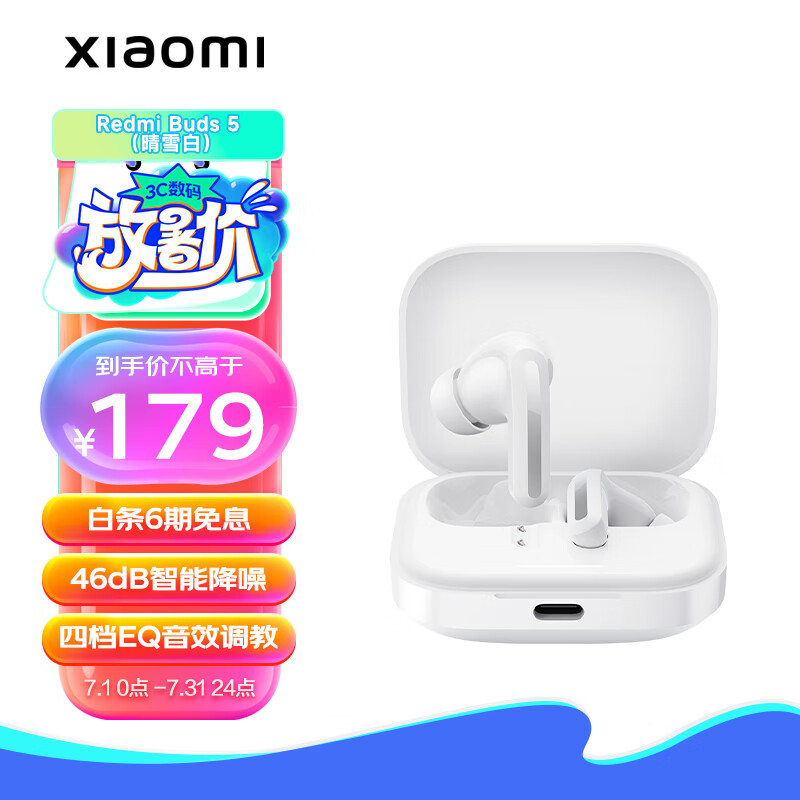 小米(MI)Redmi Buds 5 真无线蓝牙耳机 入耳式舒适佩戴 小米华为苹果手机通用(晴雪白)价格:179.00元!
