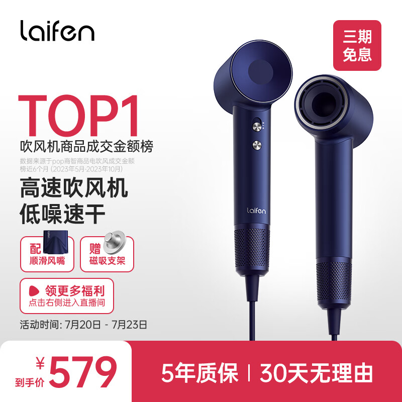 徕芬Laifen 家用吹风机 大功率速干不伤发电吹风 莱芬负离子低噪音吹风筒 赠男士女士七夕情人节礼物 LF03深蓝(赠磁吸支架)价格:900.00元!