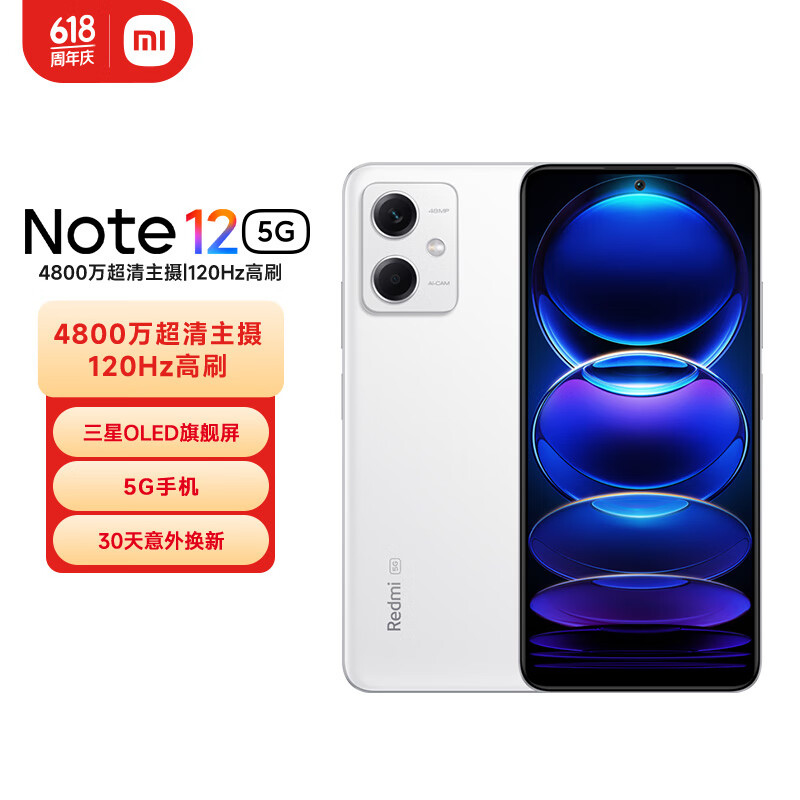 小米(MI)Redmi Note12 5G 120Hz OLED屏幕 骁龙4移动平台 5000mAh长续航 8GB+128GB镜瓷白 小米红米价格:849.00元!