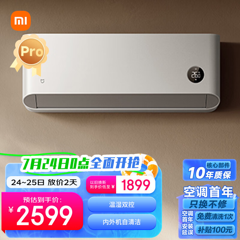 小米1.5匹 巨省电pro 超一级能效 变频冷暖 智能自清洁 壁挂式卧室空调挂机 KFR-35GW/V1A1价格:2599.00元!