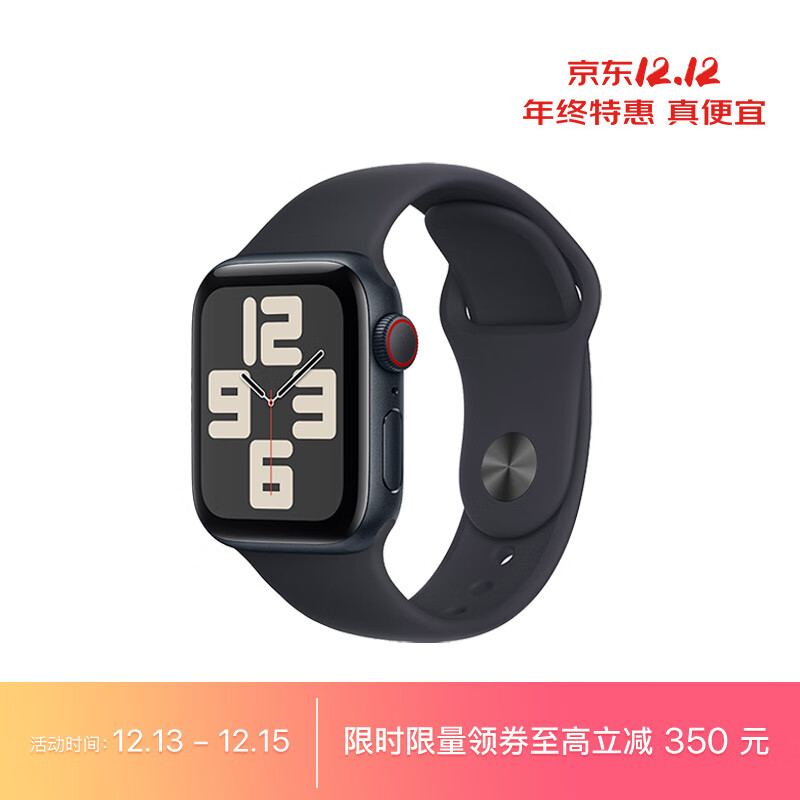 Apple Watch SE 2023款智能手表GPS + 蜂窝款40毫米午夜色铝金属表壳午夜色运动型表带S/M 健康手表MRG83CH/A价格:2399.00元!