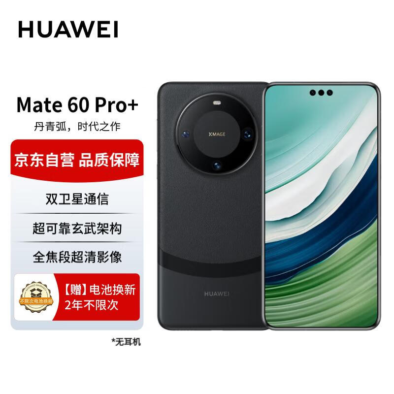 华为(HUAWEI)旗舰手机 Mate 60 Pro+ 16GB+1TB 砚黑【两年电池换新套装】价格:9099.00元!