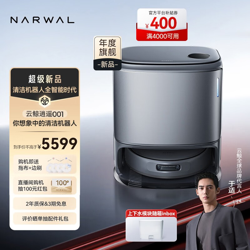 云鲸扫地机器人逍遥001 扫拖一体自动清洗拖布烘干基站集尘 双芯双目清洁擦地拖地机 上下水套装深空灰价格:5999.00元!