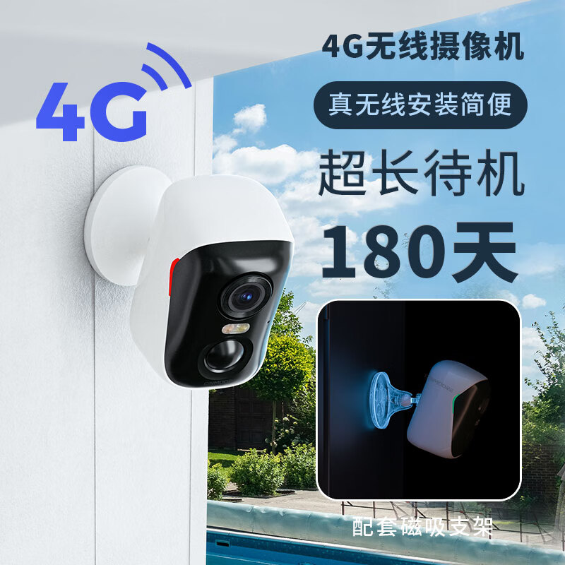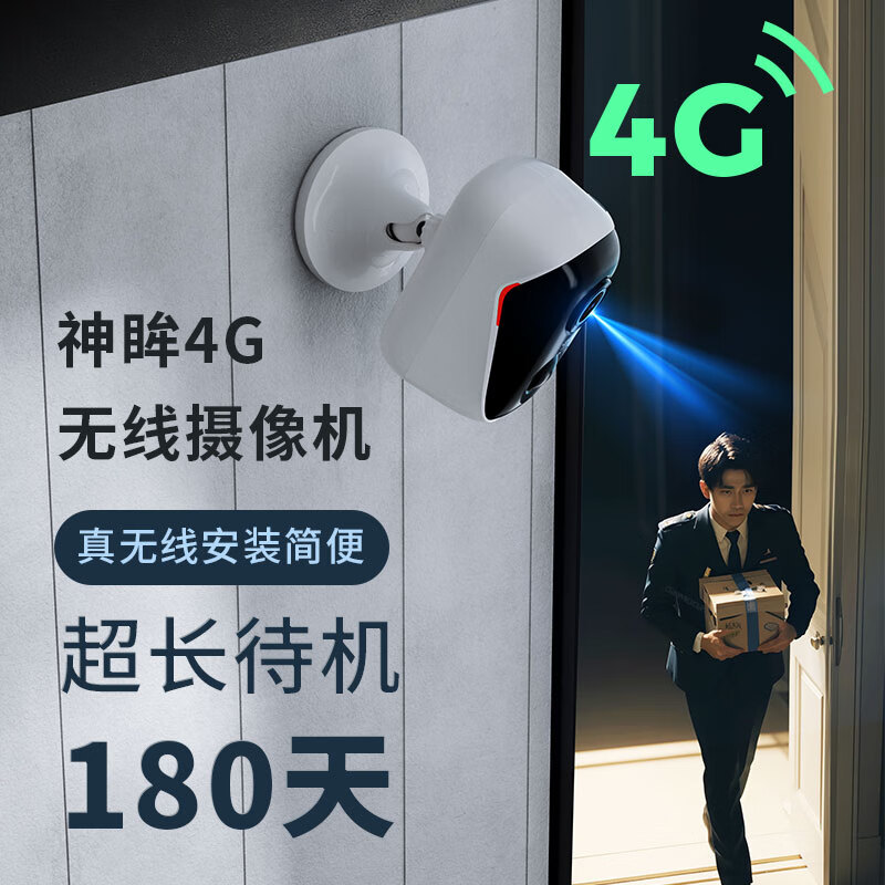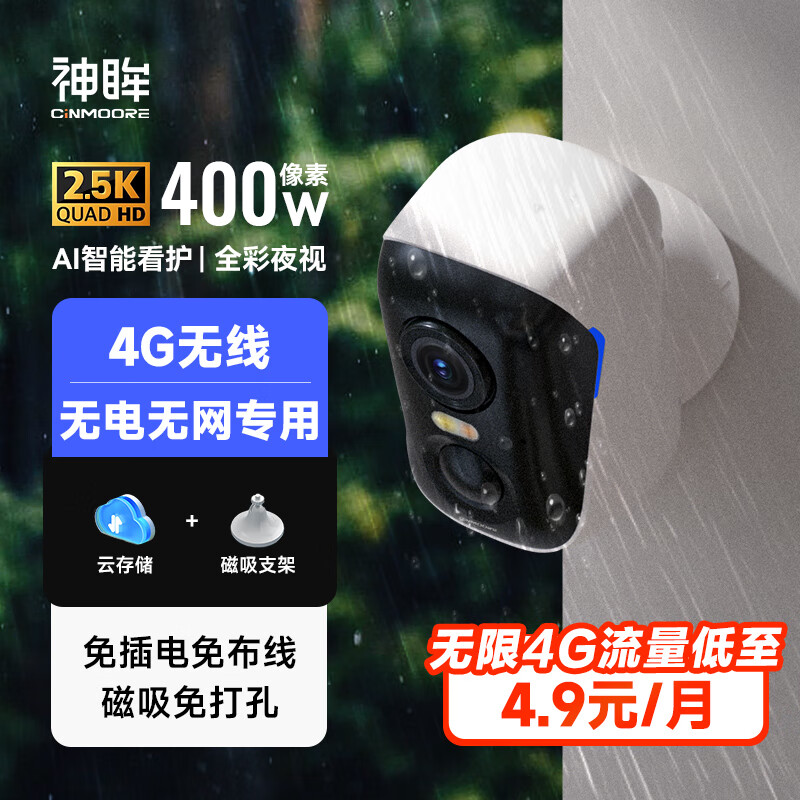 神眸4G监控摄像头 无网无电 2.5K400万极清 电池免插电免打孔 内置流量卡家用室内外高清夜视远程BC4价格:459.00元!