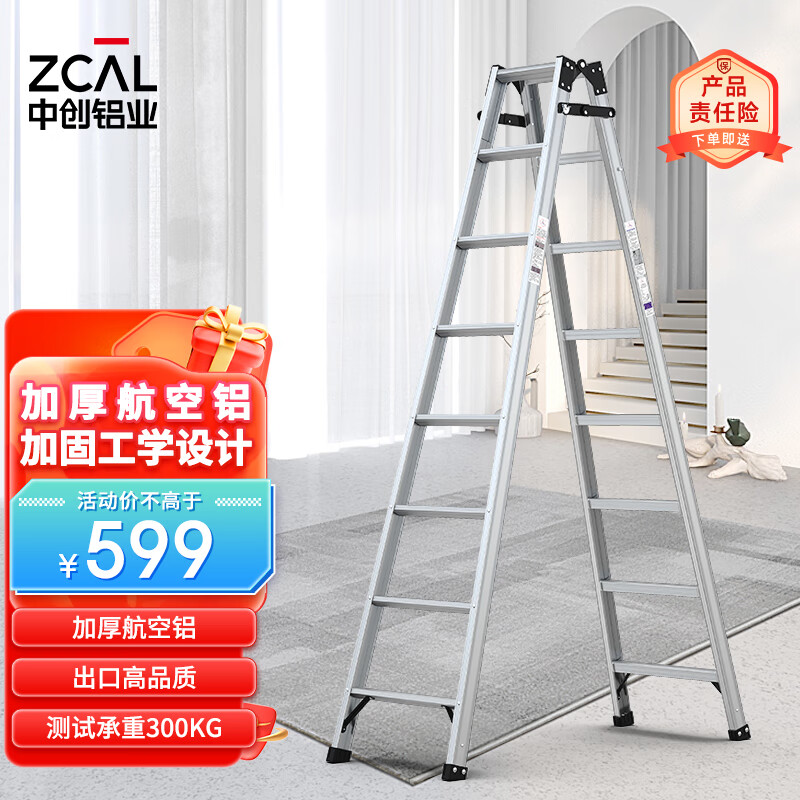 中创家用户外/工程梯 加厚铝合金人字梯2m 可折叠八步梯 TCL-08价格:599.00元!