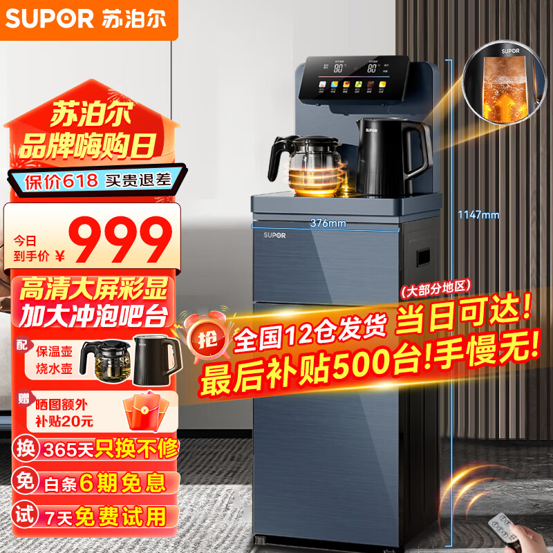 苏泊尔(SUPOR)茶吧机家用高端饮水机制冷制热遥控智能烧水壶电热水壶全自动控温冷热多功能泡茶机 CBJ22B价格:999.00元!