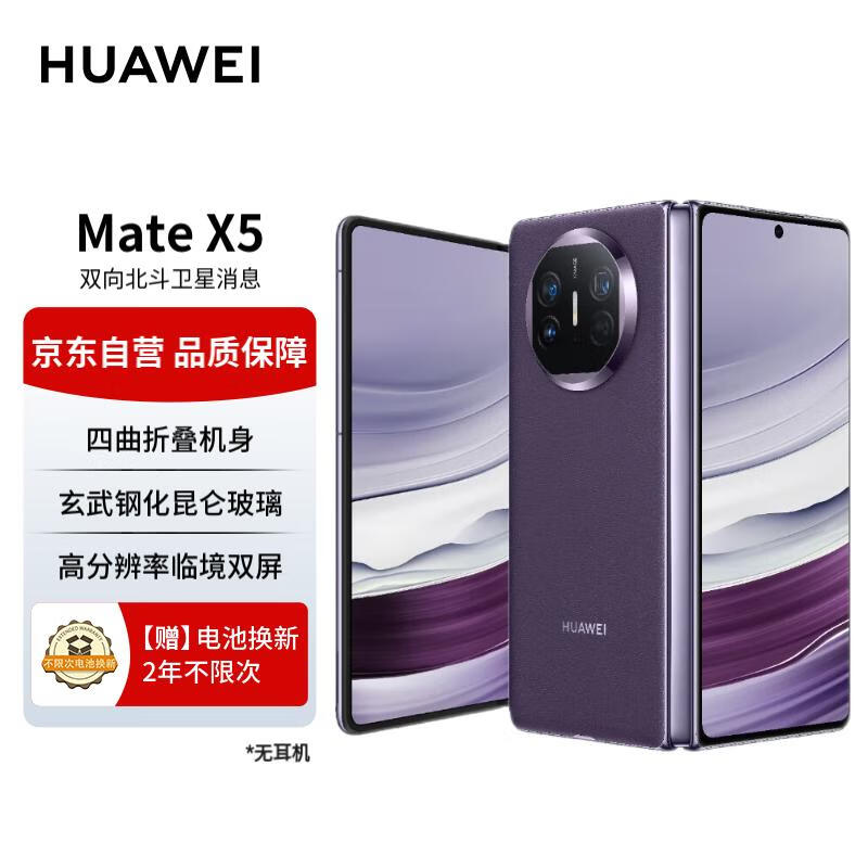 华为(HUAWEI) Mate X5 折叠屏手机 16GB+512GB 幻影紫价格:13499.00元!