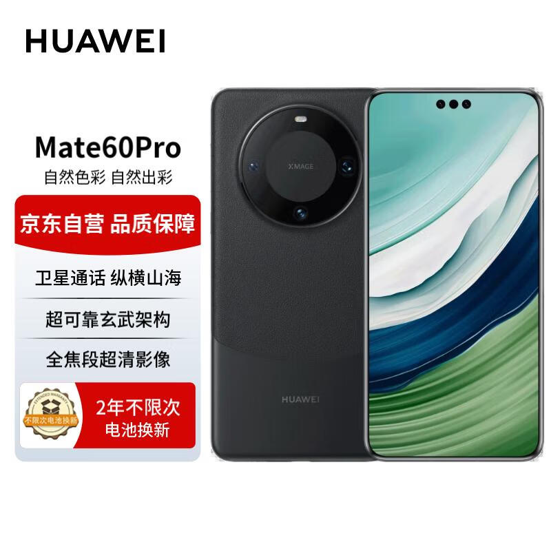 华为(HUAWEI)旗舰手机 Mate 60 Pro 12GB+512GB 雅丹黑 【两年电池换新套装】价格:6699.00元!