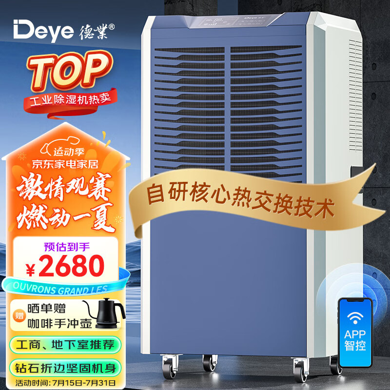 德业(Deye)工业除湿机/抽湿机 适用300平方米 别墅地下室工业商用仓库车间大功率除湿器DY-8138C价格:2980.00元!