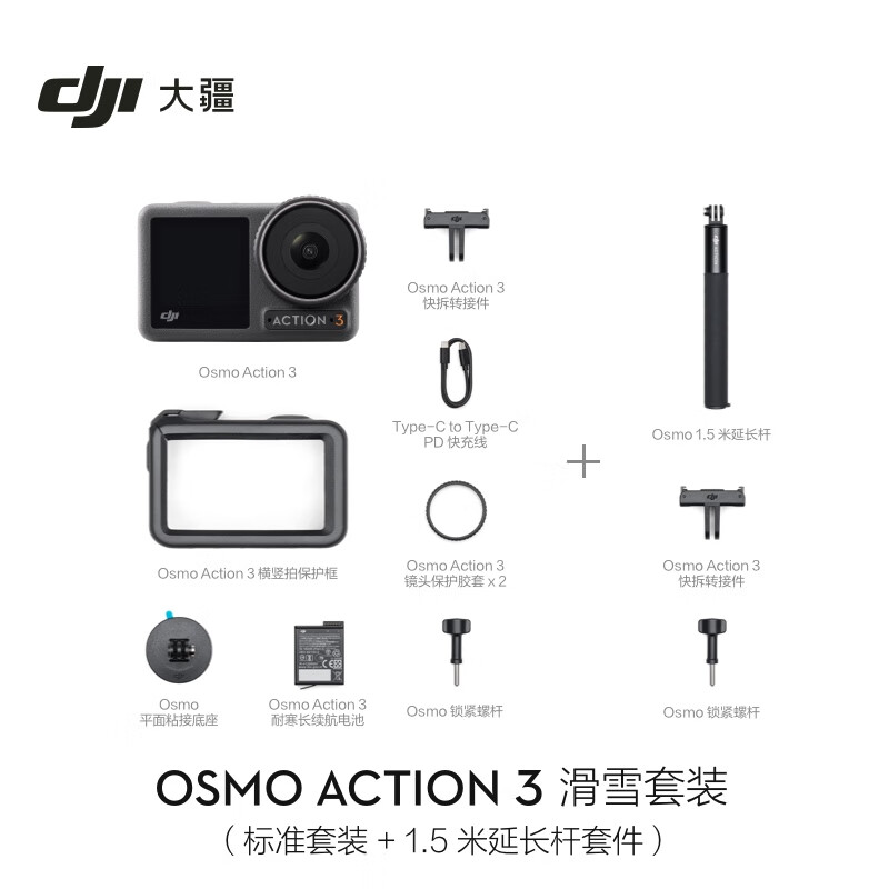 大疆 DJI Osmo Action 3 滑雪套装 运动相机 4K高清增稳户外滑雪头戴摄像机便携式 小型手持Vlog相机价格:1528.00元!