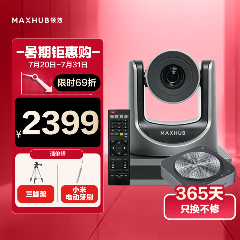 MAXHUB视频会议设备全套系统套装10倍光学变焦高清云台摄像头+全向麦克风6米拾音 会议室解决方案20-40㎡价格:2399.00元!