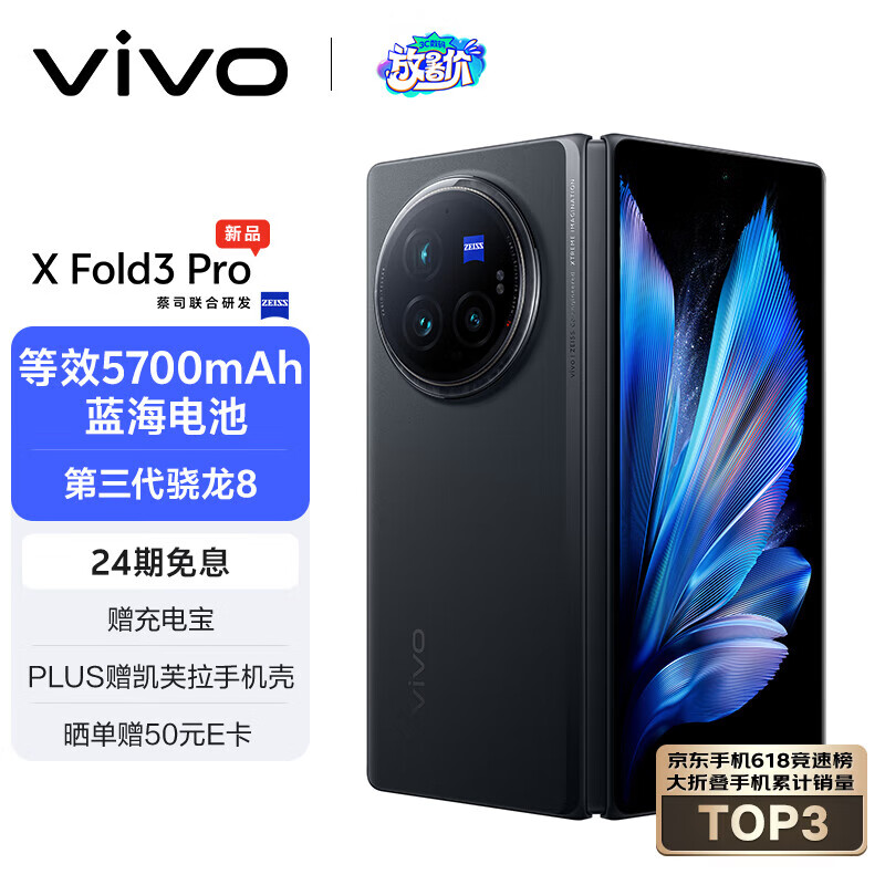 vivo X Fold3 Pro 16GB+1TB 薄翼黑 5700mAh蓝海电池 超可靠铠羽架构 第三代骁龙8 折叠屏 手机价格:10999.00元!