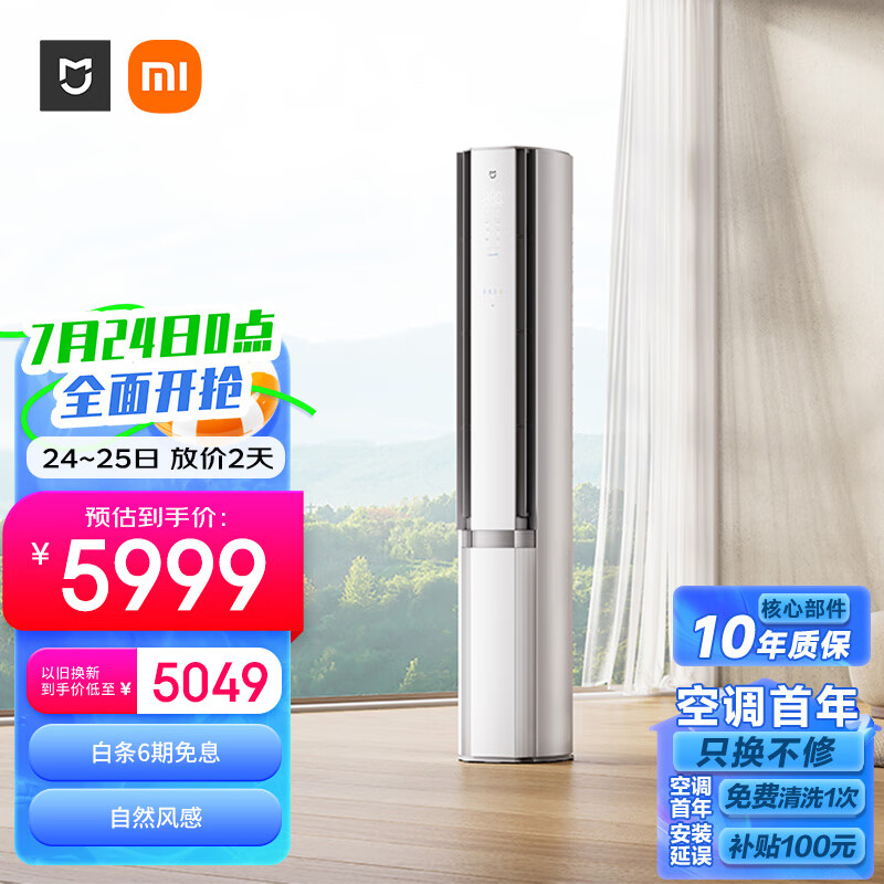 小米3匹 新一级能效 双出风 变频冷暖 自然风感 智能自清洁 空调柜机 72LW-NA11/M2A1价格:5999.00元!
