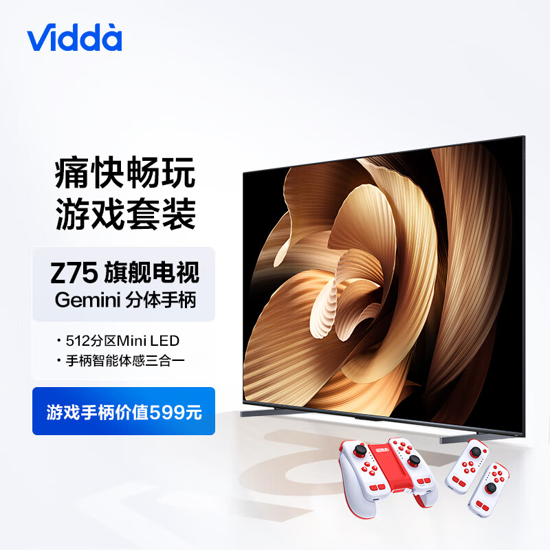 Vidda Z75 海信 75英寸 Mini LED电视机+运动加加Gemini分体手柄三合一手柄套装 游戏电视 家庭娱乐价格:4999.00元!