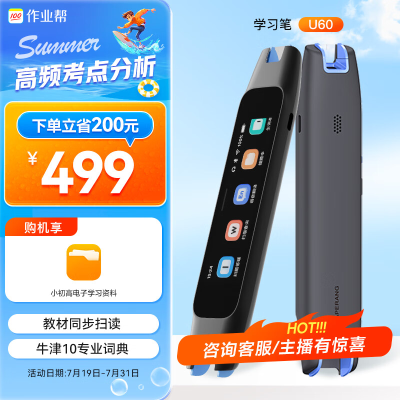 作业帮全科学习笔U60 小初高英语点读笔学习机词典笔翻译笔中英文翻译机 10亿+题库6000W词库 3.3英寸屏价格:499.00元!
