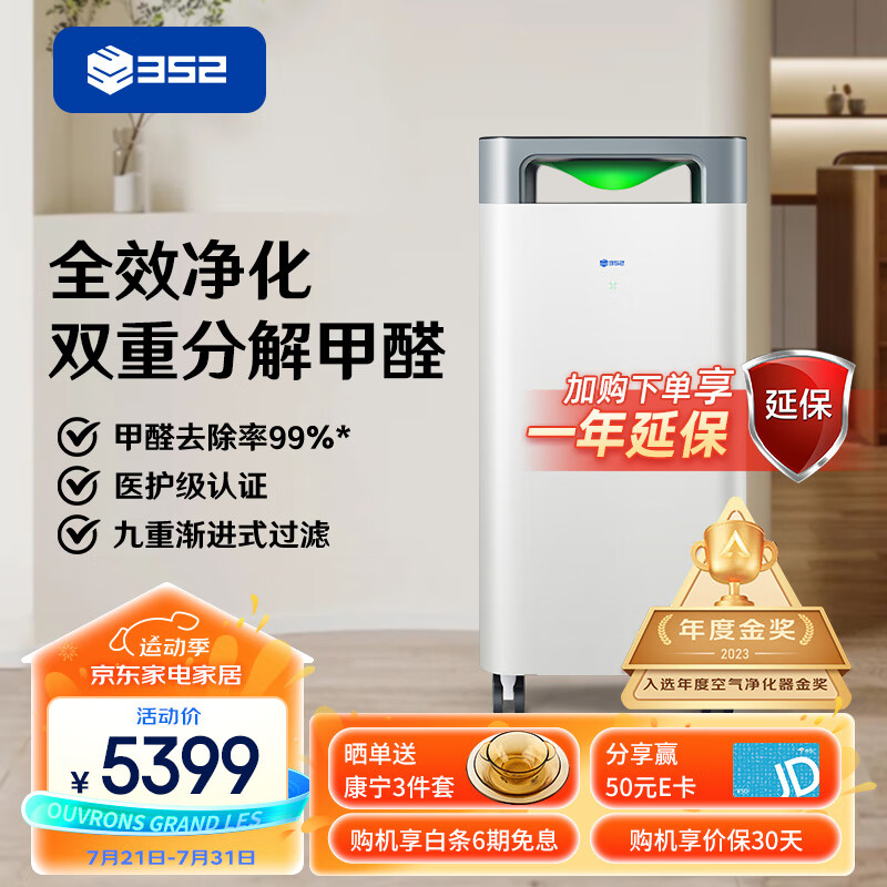 352空气净化器 双重分解除醛除菌雾霾异味除猫毛花粉过敏原低噪 全链路消杀9重净化 X88C价格:5599.00元!