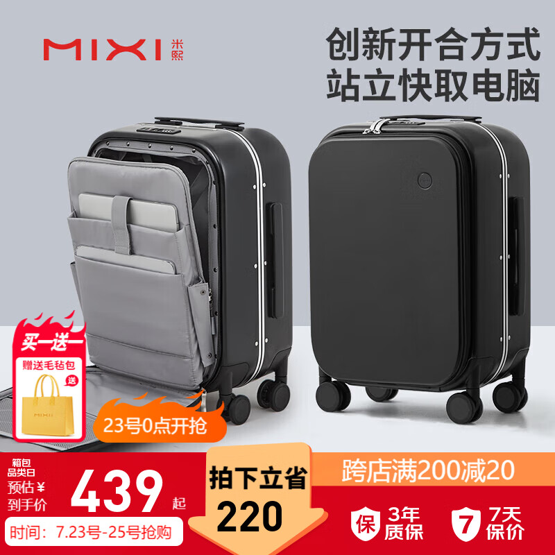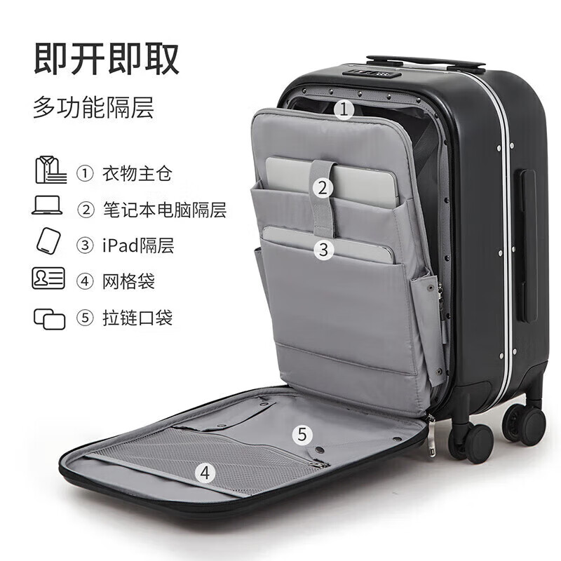米熙铝框拉杆箱子行李箱前开盖旅行箱包密码箱登机箱男20英寸黑色60价格:659.00元!