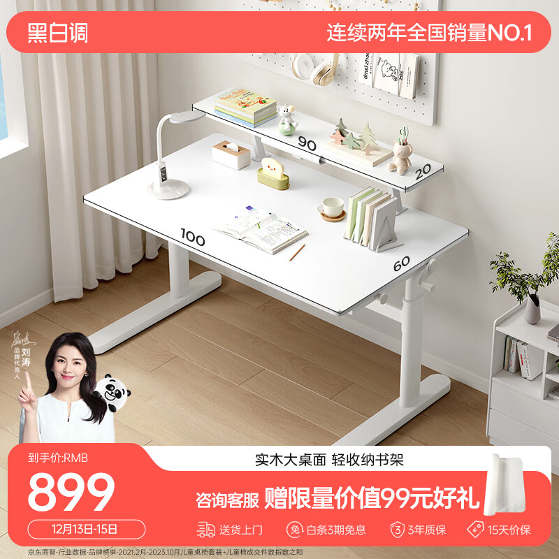 黑白调学习时光A1学习桌【带书架可升降大桌面 环保实木】儿童书桌电脑桌 1m白价格:1899.00元!