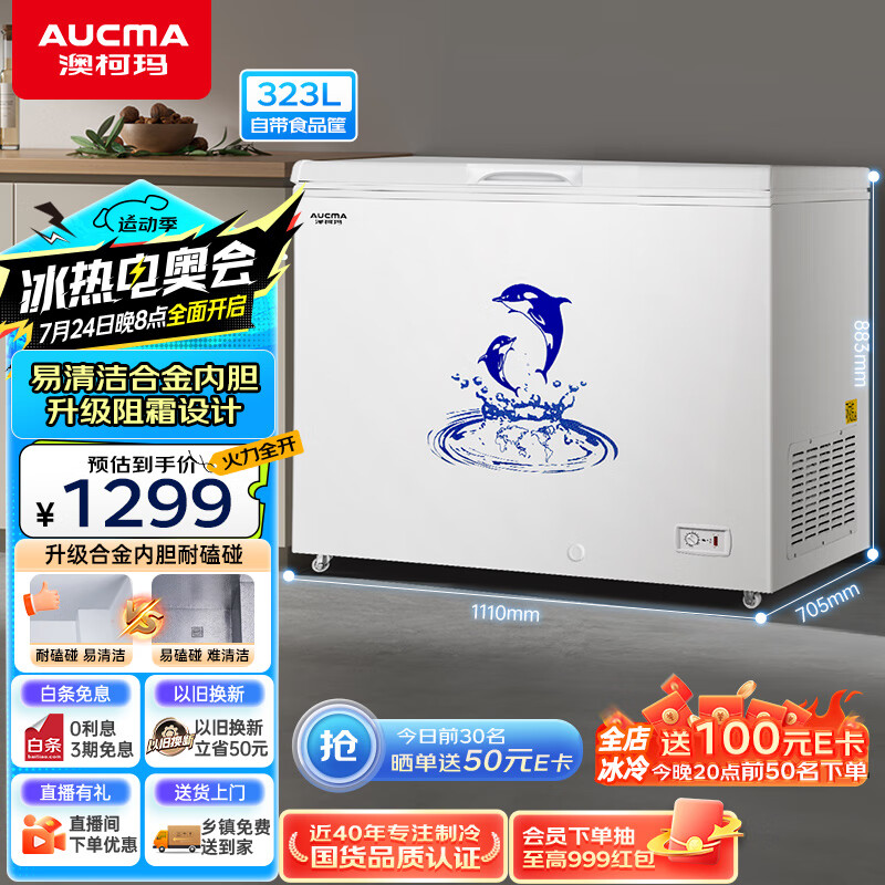 澳柯玛(AUCMA)323升低霜冰柜家用商用单温顶开门冷藏柜冷冻柜母乳小冰柜商用小型冰箱冷柜BC/BD-323NE以旧换新价格:1299.00元!