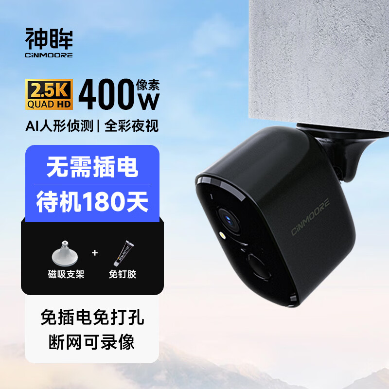 神眸 家门口楼道摄像头 免插电监控器 磁吸免打孔 无线wifi家用室内电池充电 户外太阳能高清手机远程价格:389.00元!