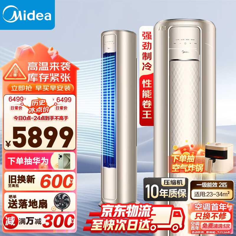美的(Midea)2匹空调风尊 新一级能效 变频冷暖 客厅圆柱立式智能科技柜机 智能家电 以旧换新 KFR-51LW/N8MZB1价格:5899.00元!
