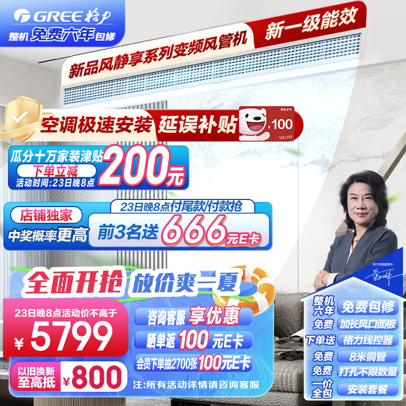 格力(GREE)中央空调 风管机一拖一 K+风静享 大1匹家用嵌入式空调1级能效FJR2.6Pd/Cb4Nh-N1京派(一价全包)价格:5799.00元!