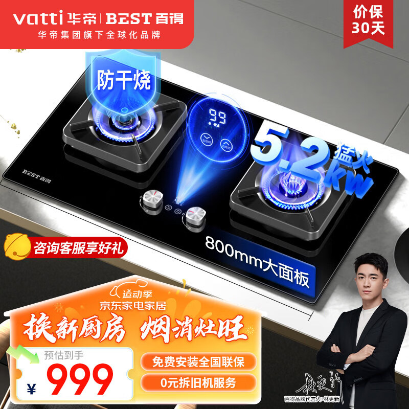 百得(BEST)华帝出品燃气灶天然气煤气灶双灶具 5200W猛火定时灶防干烧台式嵌入式炉灶JZT-QE62(天然气)价格:1099.00元!