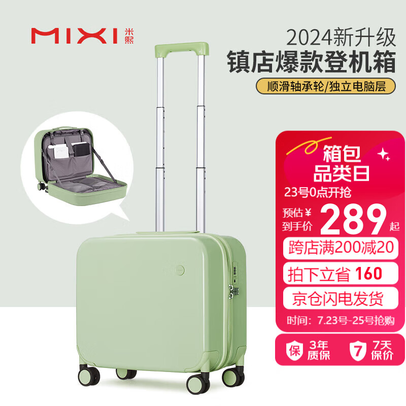 米熙高颜值登机箱拉杆箱行李箱男旅行箱子拉杆箱子18英寸牛油果绿36价格:449.00元!