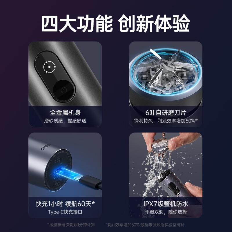 5、发货速度非常快!昨天下单今天就到了,迫不及待打开试用,电机动力很强劲,刮的特别干净颜值耐打!手感比想象中要好很多,小巧,外出携带方便还有很多赠品物超所值了那个绒面收纳袋真的超级好看又实用真的值得推荐五星好评