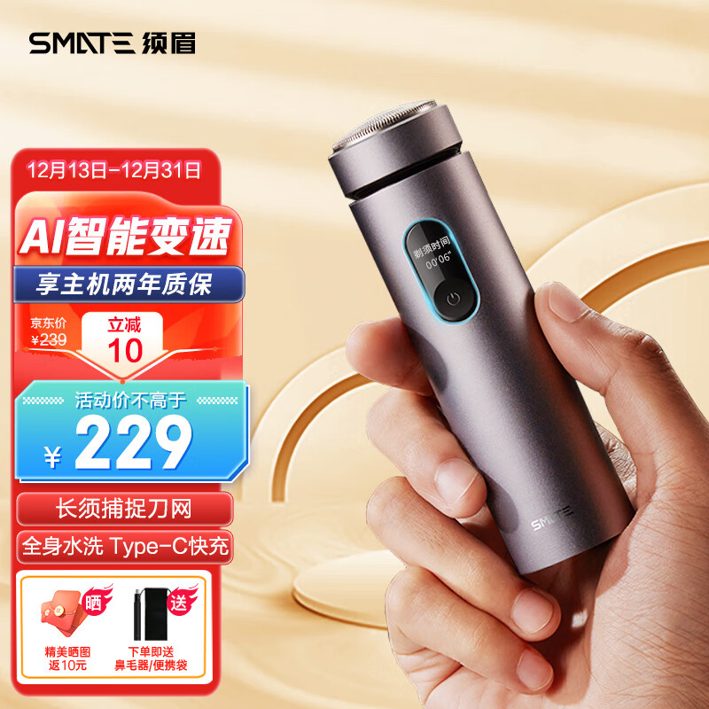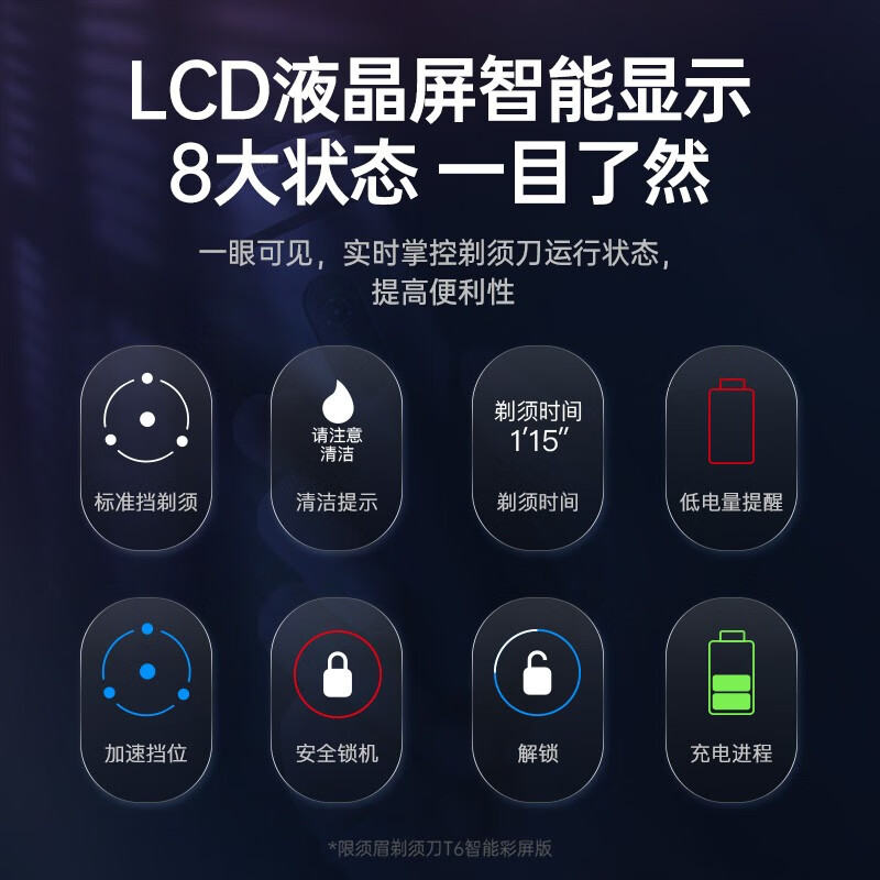 须眉智能感应剃须刀T6电动刮胡刀男士剃须刀Type-c快充电便携剃须防水剃须刀节日送男友礼物老公送父亲 智能彩屏-冷空灰价格:239.00元!