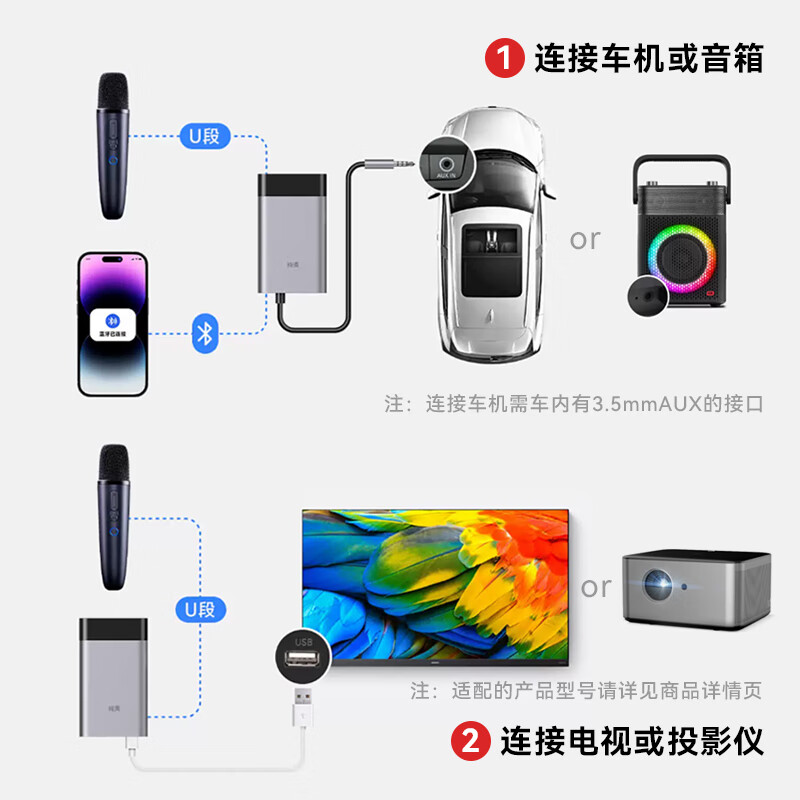 5、麦克风连接电视非常方便,插上接收器就能用不需要接音响,整体音效也ok,好评????