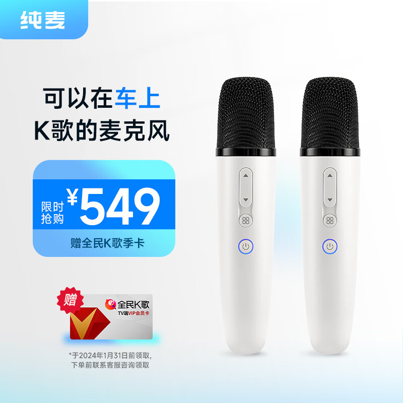 纯麦无线车载麦克风K歌话筒家庭KTV汽车通用等电视专用 Q1PRO冰川白双支价格:549.00元!