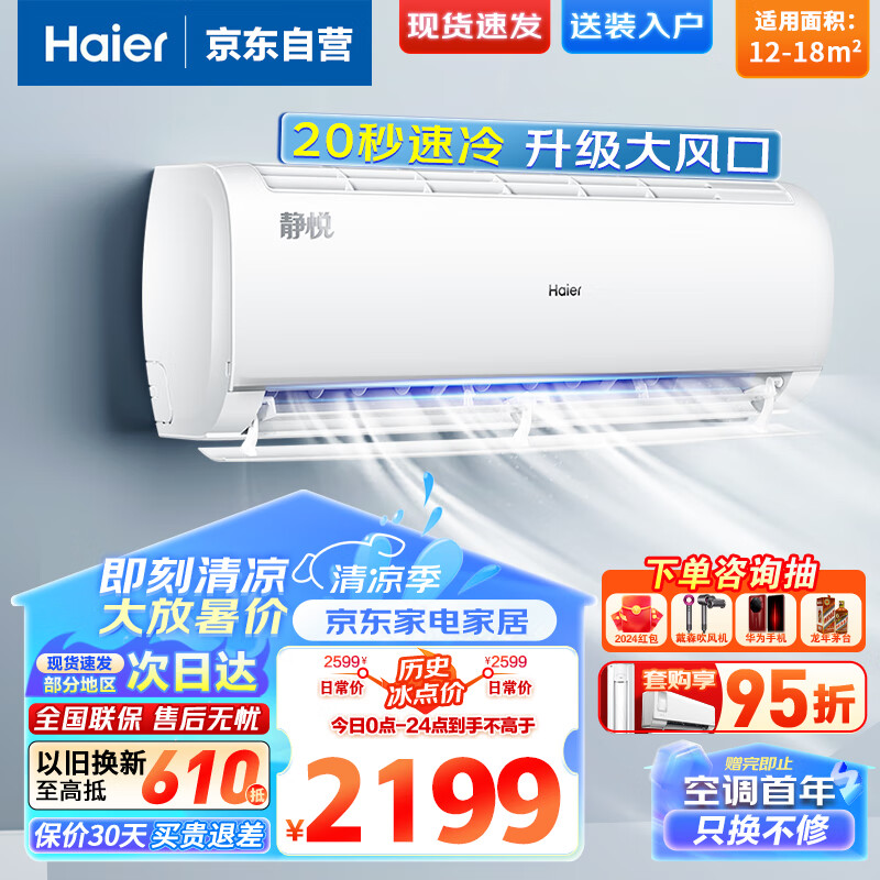 海尔(Haier)空调1匹挂机静悦变频快速冷暖自清洁卧室壁挂大一匹空调轻音省电26KBB以旧换新价格:2199.00元!