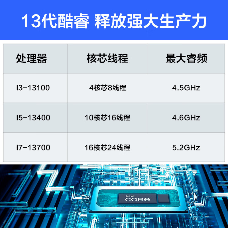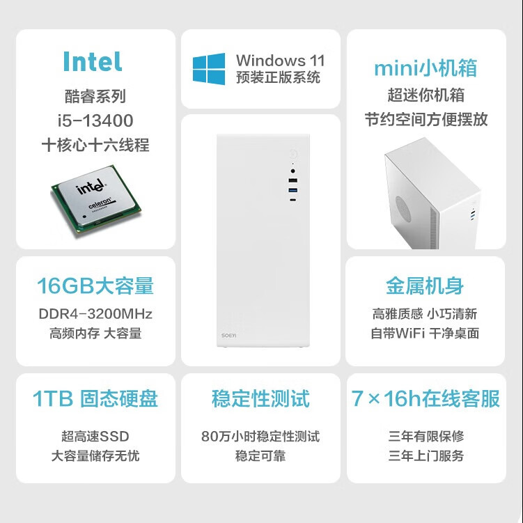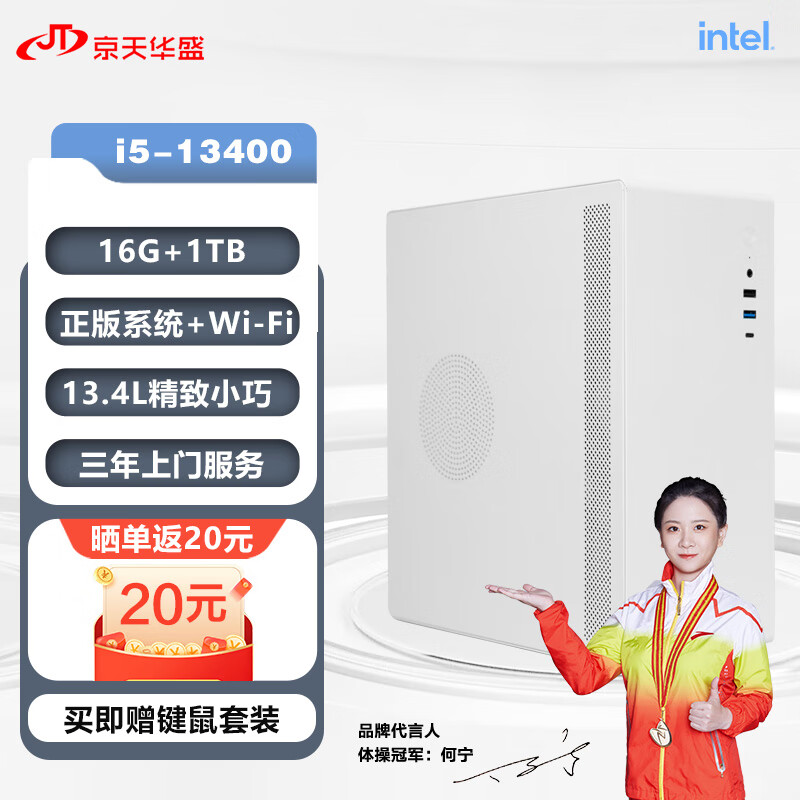 京天华盛 灵悦501 十三代i5商务办公小机箱台式电脑主机(i5-13400 16G 1T WIFI 三年上门 )价格:2499.00元!