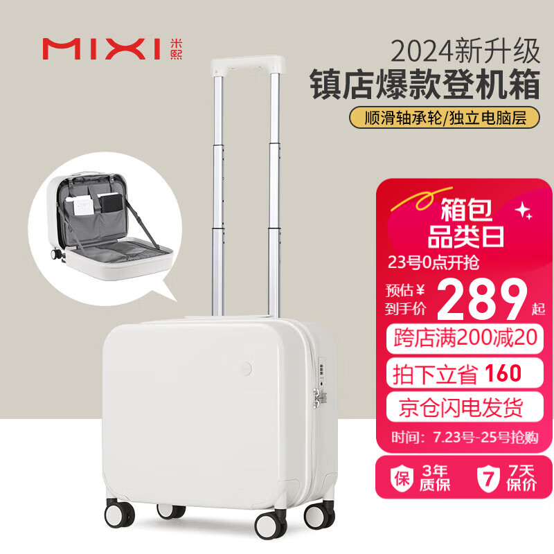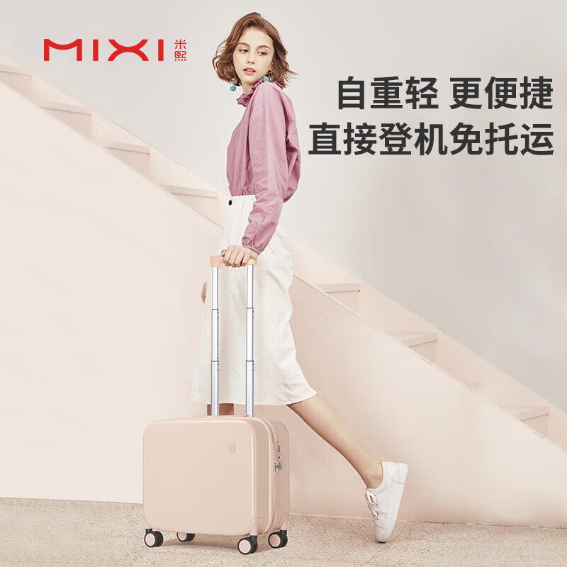米熙高颜值登机箱小行李箱女拉杆箱子旅行箱女密码箱包18英寸烟白9236价格:449.00元!