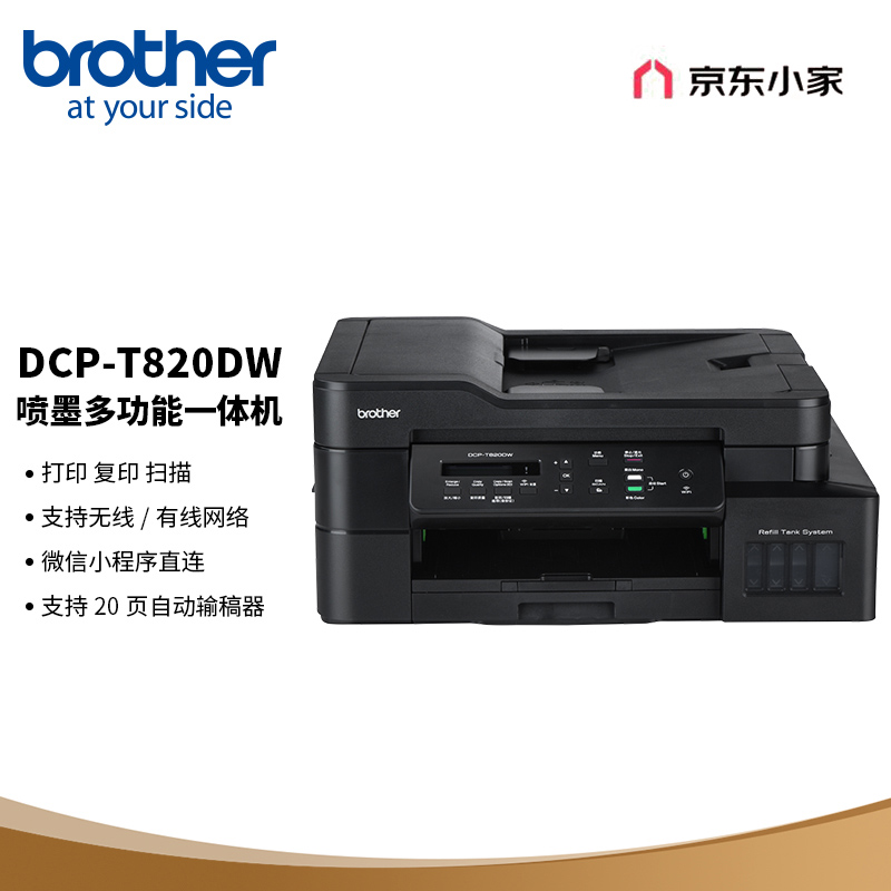兄弟(brother)DCP-T820DW 彩色喷墨多功能一体机(A4幅面 自动双面打印 内置墨仓 有线/无线网络连接)价格:3630.00元!