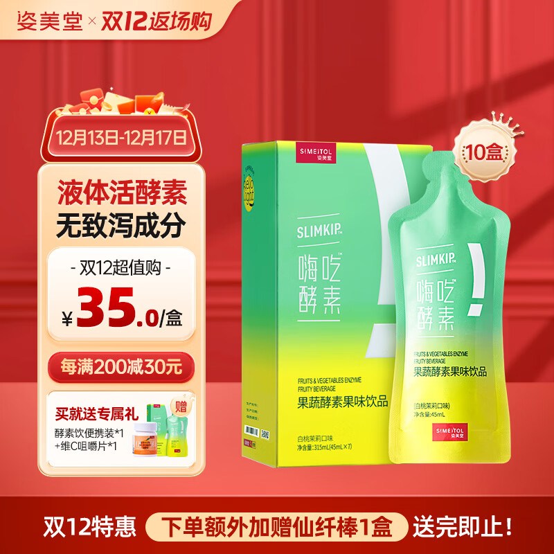 姿美堂(SIMEITOL)嗨吃酵素饮植物果蔬孝素水果原液果冻酵素粉益生菌饮料10盒装(45ml*70)*10送女友送爱人价格:390.00元!