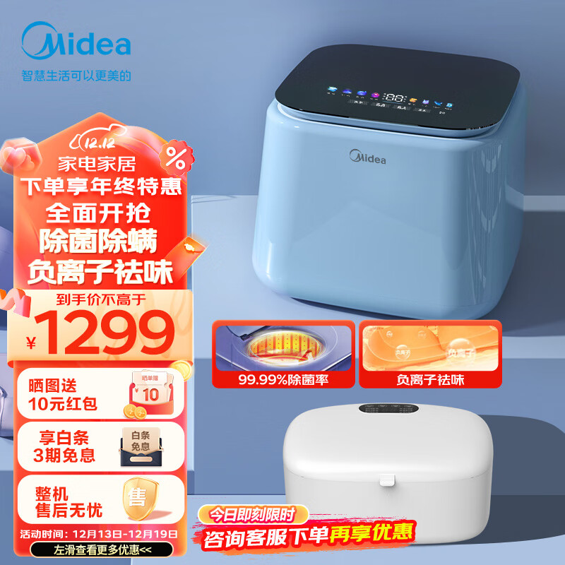美的(Midea)迷你洗烘套装 高温煮洗内衣机+内衣裤紫外线除菌消毒盒 MNB10-01L + MGH04-02VYW价格:1299.00元!