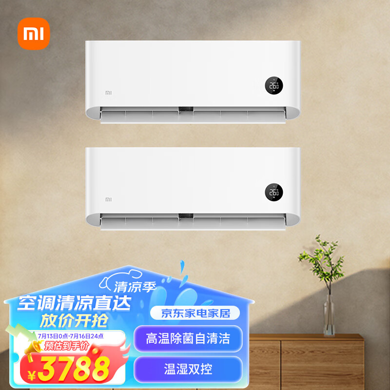 小米巨省电空调套装 2套挂机1.5匹一级+大1匹一级 新一级能效 变频冷暖价格:3788.00元!