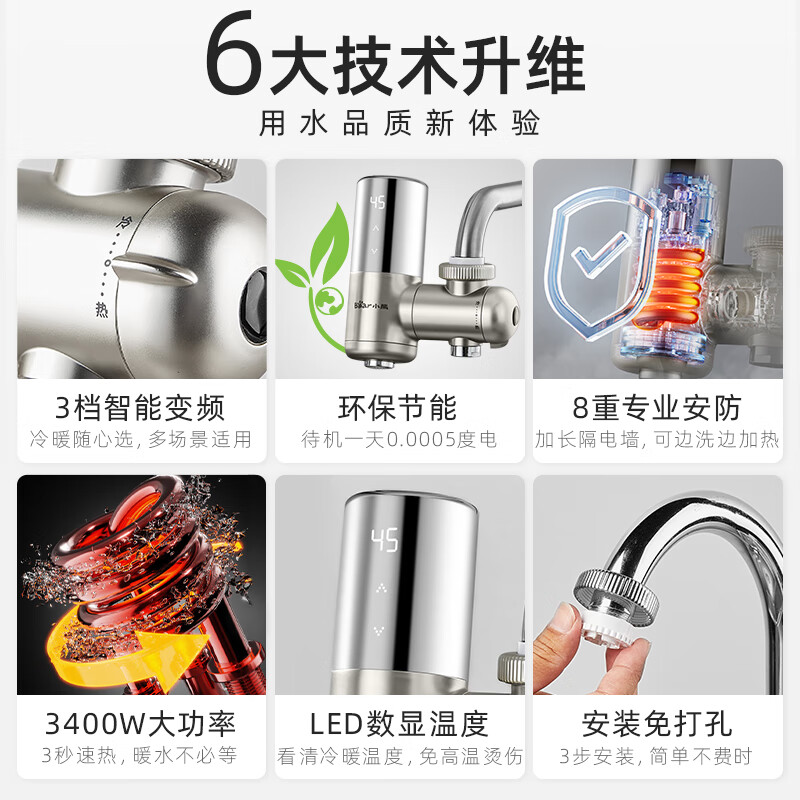 小熊(Bear)电热水龙头 家用速热即热式加热快免安装厨房卫生间阳台小厨宝电热水器水龙头加热器 DSK34-A14N5价格:269.00元!