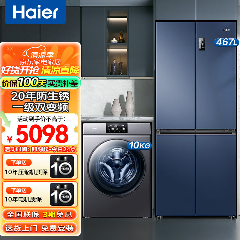 海尔(Haier)冰洗套装 467 升一级双变频十字对开门节能冰箱+10KG一级能效变频节能家用洗衣机价格:5098.00元!