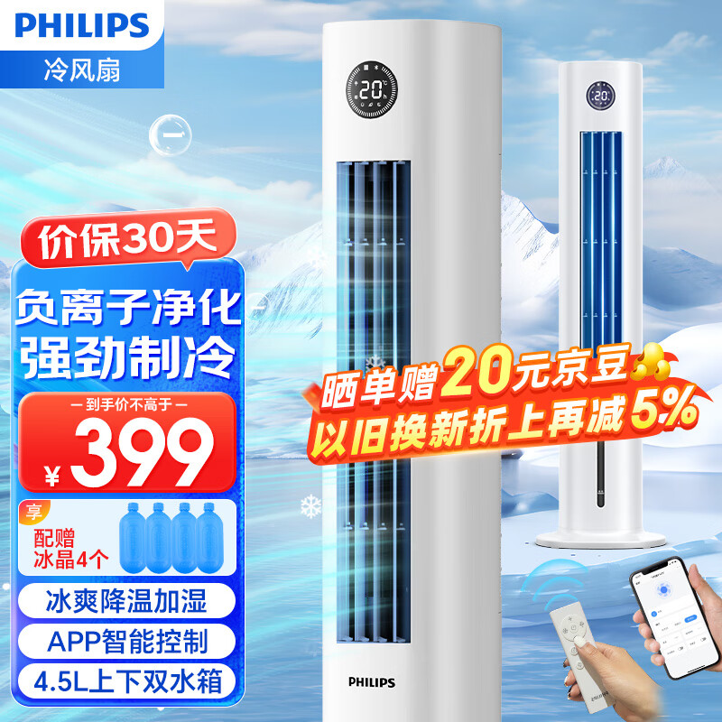 飞利浦(PHILIPS)空调扇制冷家用冷风扇负离子净化加湿遥控冷风机单冷水塔扇移动小空调客厅卧室智能冷气扇ACR3142T价格:499.00元!