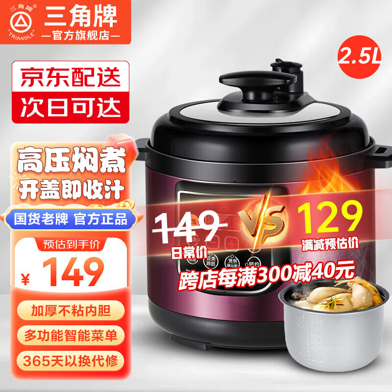 三角牌(Triangle)电锅迷你电高力锅小型智能家用多功能电饭煲智能预约煲汤锅炖汤锅 紫罗兰色【不粘内胆】 2.5L价格:149.00元!