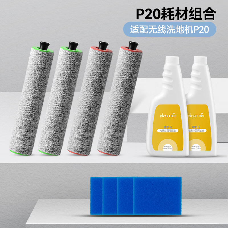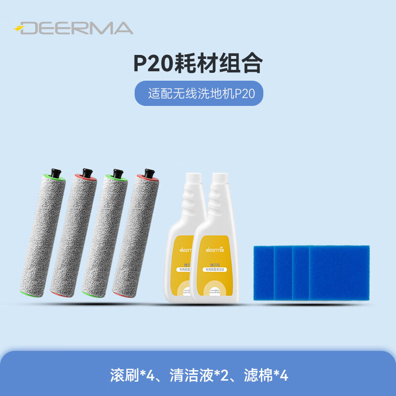 德尔玛(Deerma)P20耗材配件包 适用于P20无线洗地机 内含两套滚刷(4个)+两瓶消毒液+4个海绵滤芯价格:159.00元!