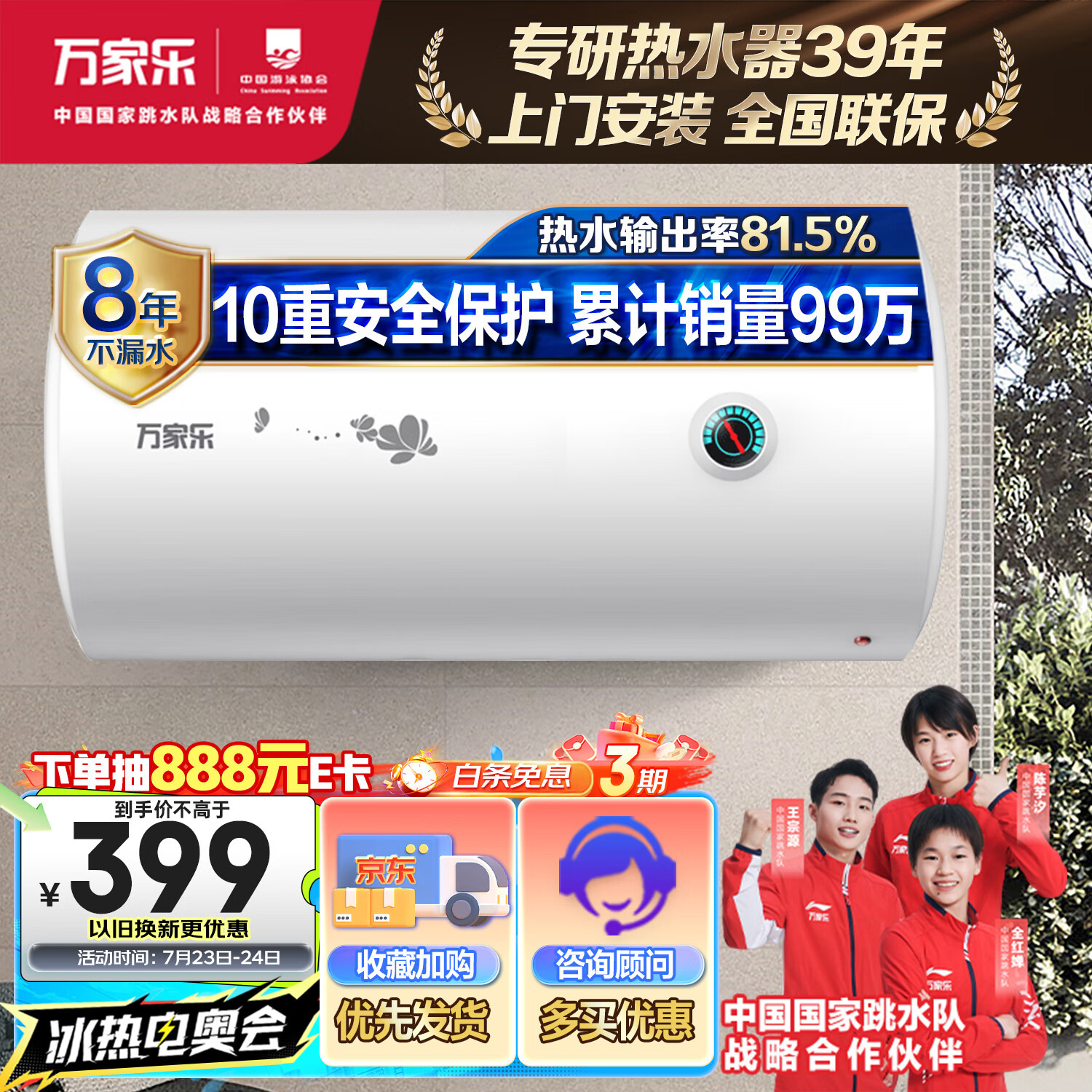 万家乐40升储水式电热水器洗澡机 2100W速热 加长防电墙 经济节能下潜加热 抗腐耐用小巧易操控D40-H111B价格:399.00元!