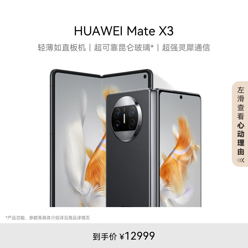 华为/HUAWEI Mate X3 折叠屏手机 超轻薄 超可靠昆仑玻璃 灵犀通信 256GB 羽砂黑 鸿蒙智能旗舰价格:12999.00元!
