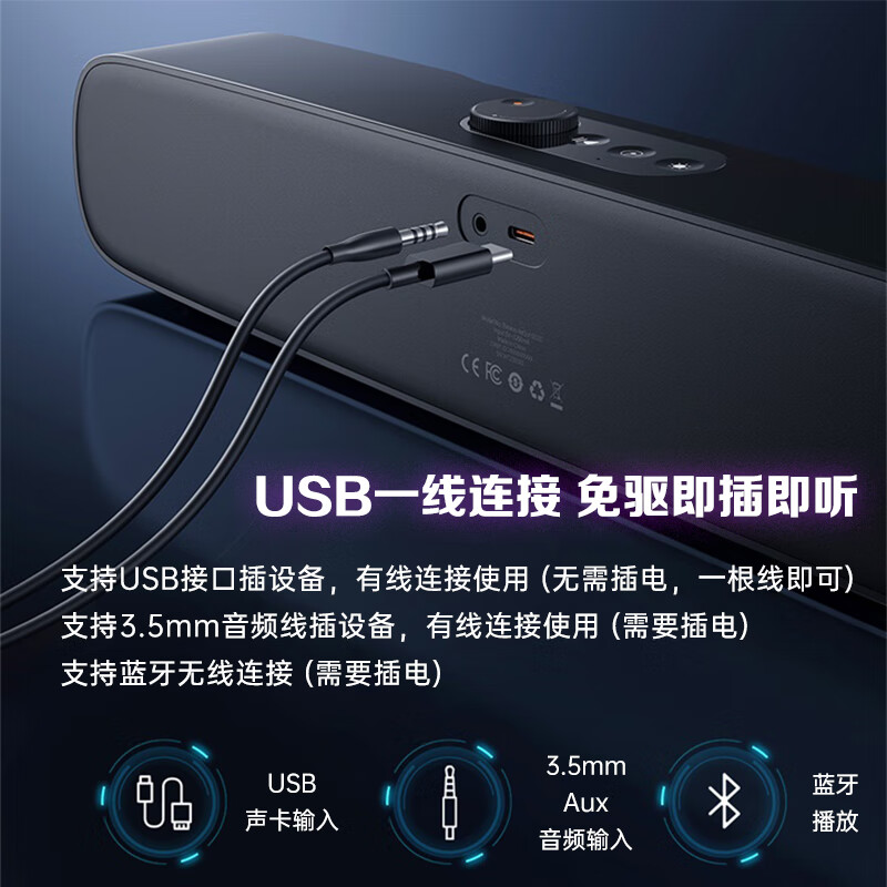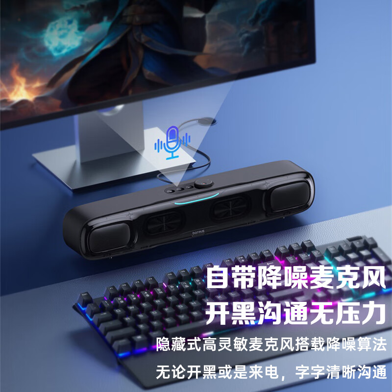 倍思 DS10电脑音响蓝牙桌面音箱带麦克风一体台式机主机笔记本游戏电竞usb有线无线条形低音炮家庭家用价格:109.00元!