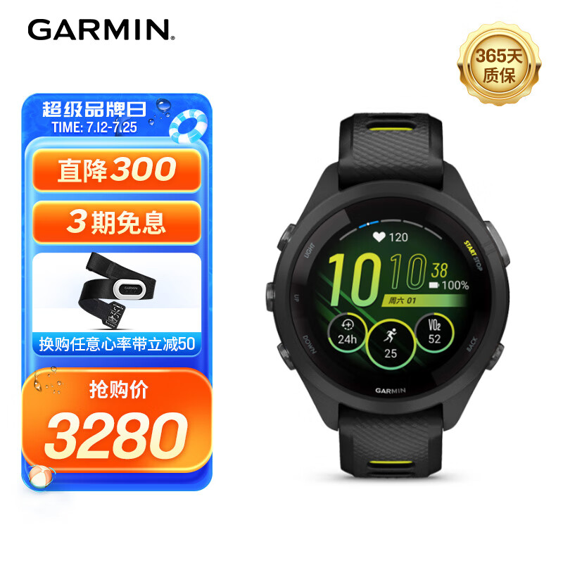 佳明(GARMIN)Forerunner265s 黑色小码 跑步智能多功能户外旗舰男女运动手表 价格:3280.00元!
