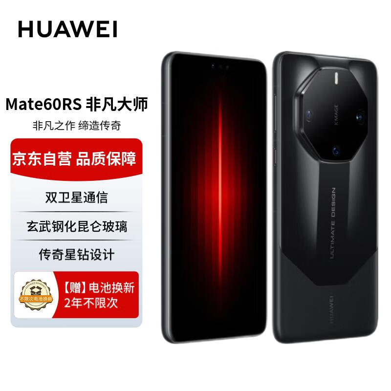 华为(HUAWEI)旗舰手机 Mate 60 RS 非凡大师 16GB+512GB 玄黑 ULTIMATE DESIGN【两年电池换新套装】价格:10399.00元!